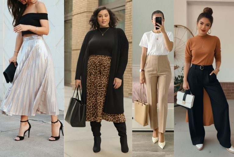 Luce radiante con estas ideas de atuendos con pantalones de vestir y faldas midi, ideales para Navidad