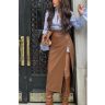 Los tonos chocolate claro y caramelo son una gran apuesta para hacer looks con faldas midi y botas largas