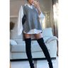 Look con chaleco oversized + camisa blanca de botones XL y bota larga