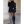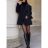 Total look negro con blazer XL, suéter de cuello alto y medias