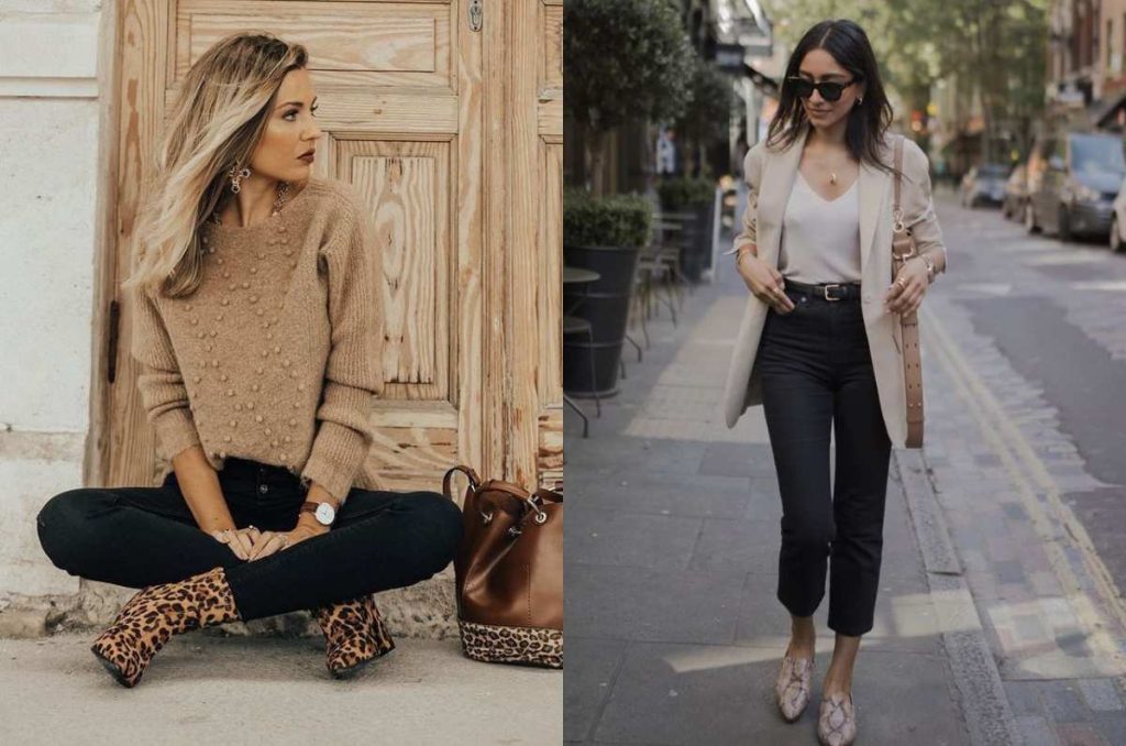 Los colores neutros nunca pasan de moda, al igual que los zapatos animal print. Para esta tercera opción te propongo unos zapatos de leopardo, cebra o serpiente en tonos neutros combinados con un blazer beige, blusa o camisa blanca y jeans o pantalones negros.
