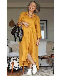 Tenis blancos, el toque moderno que transforma tu vestido camisero