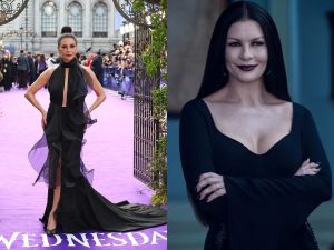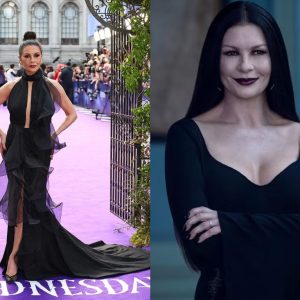 En la premiere de la temporada 2 de Merlina, Catherine Zeta-Jones optó por un elegante vestido negro que destacó por su sofisticación, contrastando con su outfit inspirado en la serie. Esta dualidad refleja cómo los actores combinan glamour de alfombra roja con la esencia de sus personajes