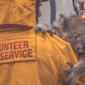 Un bombero rescatando a un koala en medio de un incendio recuerda la urgencia de apoyar a los koalas afectados en Australia y la importancia de adoptar para ayudar a su recuperación