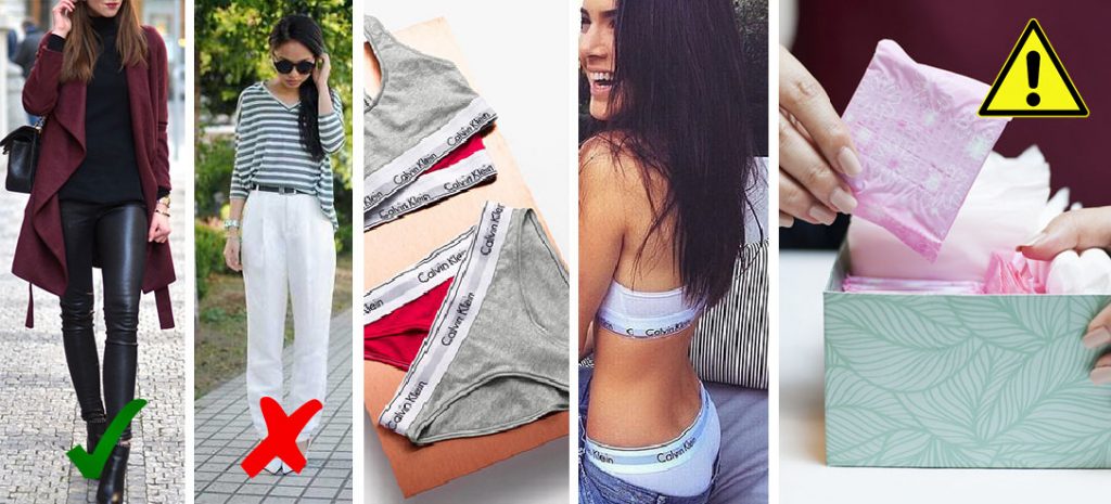 Cuando estamos en nuestros días estamos inseguras casi todo el tiempo, esto por miedo a que nos suceda un accidente. Y si luego por todo el trabajo que tienes no te cambias de toalla a tiempo, es más seguro que las desgracias sucedan. Por eso, cuando estas en tus días, te recomendamos usar pantalones de mezclilla o de vestir pero que sean oscuros. Esto será perfecto por si te manchas, no se note a primera vista y tengas una oportunidad de enjuagar “tantito” tu pantalón y que no se note nada.