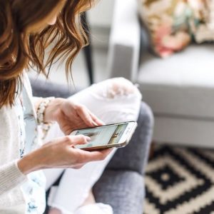 Mujer revisando su celular como símbolo de organización y planificación
