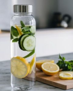 Agua natural con rodajas de pepino, limón o naranja y hielo, es igual refrescante y saludable